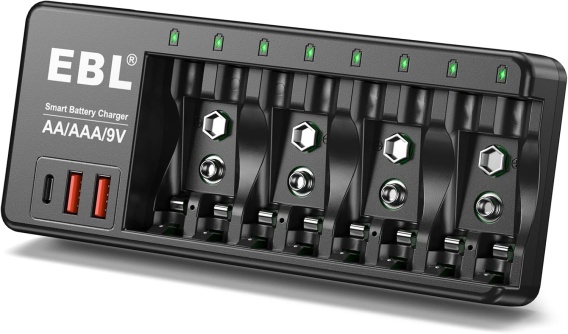 ⭐ EBL INTELIGENTNA ŁADOWARKA DO BATERII AA AAA 9 V