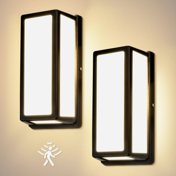 ✅ Highsam Lampy zewnętrzne z czujnikiem ruchu, 24 W, lampy ścienne na zewnątrz/wewnątrz, lampa zewnętrzna, ciepła biel 3000 K, wodoszczelna IP65, aluminiowa lampa zewnętrzna do ogrodu, na taras, [Klasa energetyczna A]