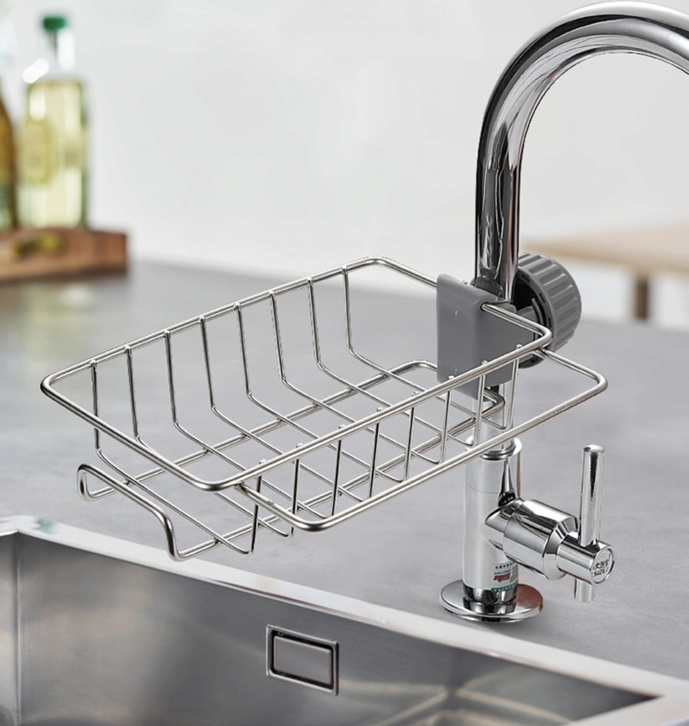 ✅ Skuteczna organizacja:Metalowa półka ułatwia porządkowanie drobiazgów przy kuchennym kranie.